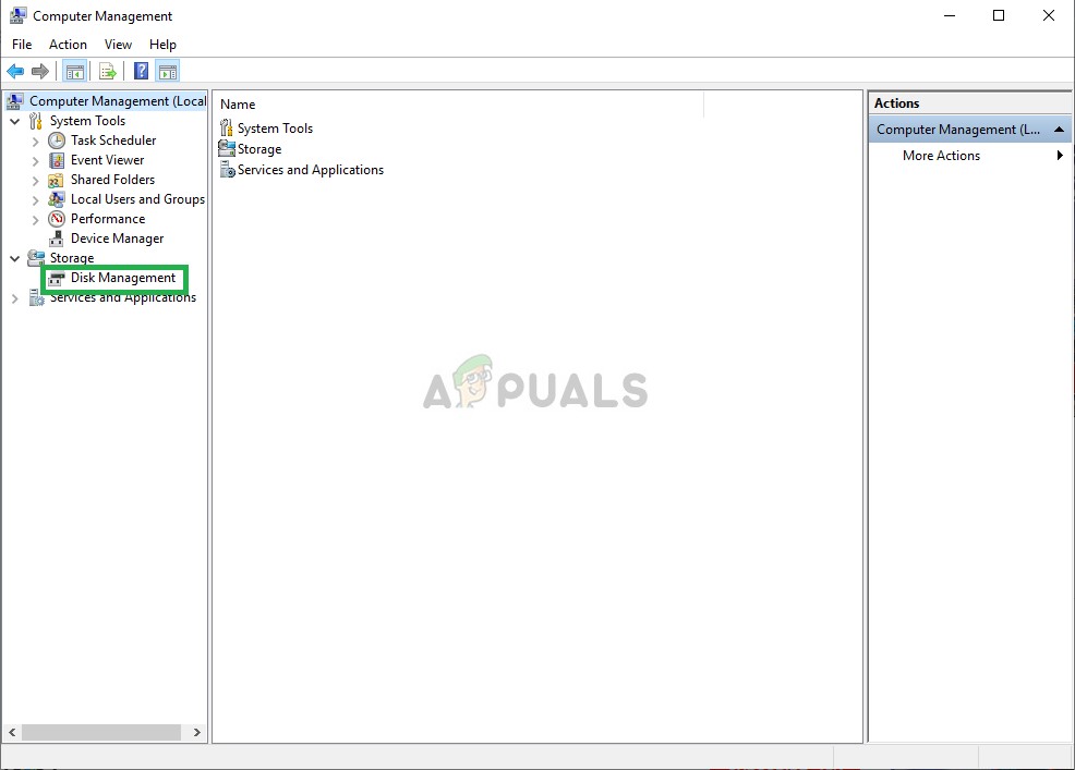Double Clicking on the Disk Management option under the storage heading - It will take a few moments to recognize the Hard Drives attached to the computer