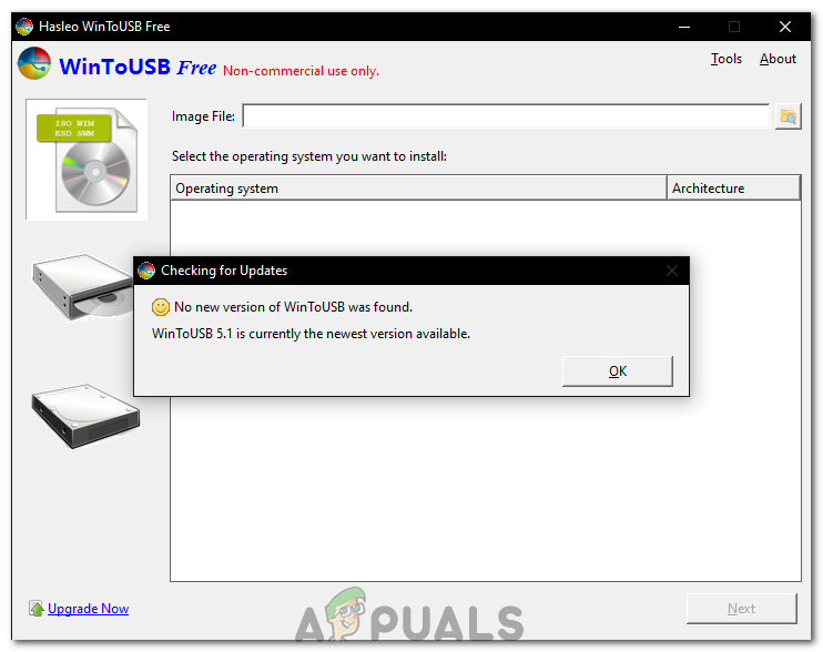 - After the program is installed, open it and click on OK in the checking for an updated prompt message