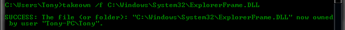 Takeown /f C:\Windows\System32\ExplorerFrame.DLL Takeown /f C:\Windows\SysWOW64\ExplorerFrame.DLL