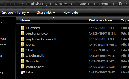 You should now be able to replace those ExplorerFrame.DLL files with the ones that came included with your shell theme. You can do this for any other files included in your shell theme that need to be placed in the /system32 and /syswow64 folders.C