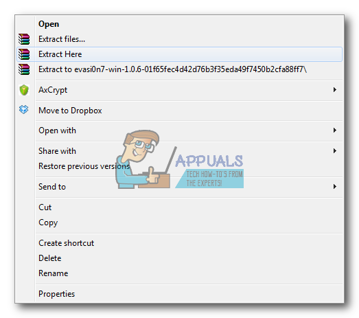 - Now, extract the Evasi0n zip file to the same Pwnage folder on your desktop.