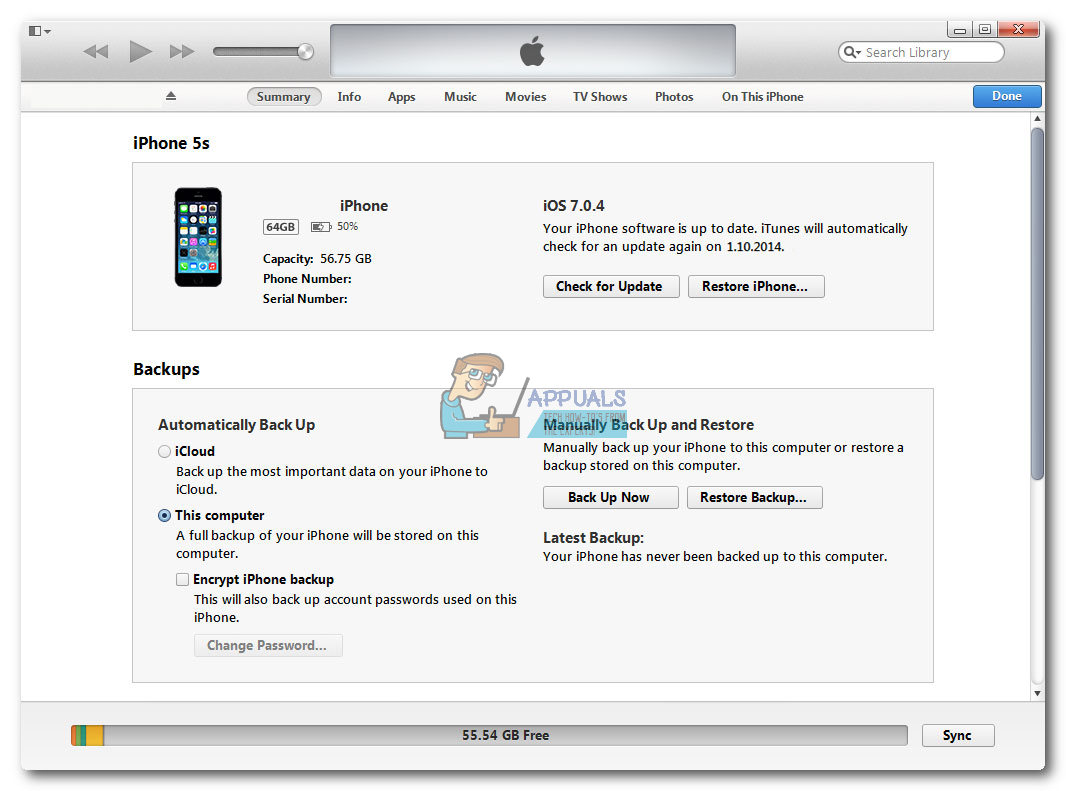 - Connect your iPhone to your Windows PC and perform a manual backup of your device’s data.