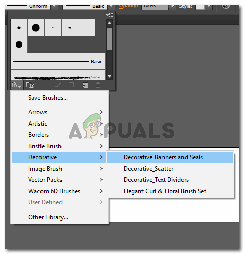 Decorative banners and seals. - The minute you click on this option, a small window will open which will show you the collection for banners and seals on Adobe Illustrator. You can choose any of this and use it for your design.