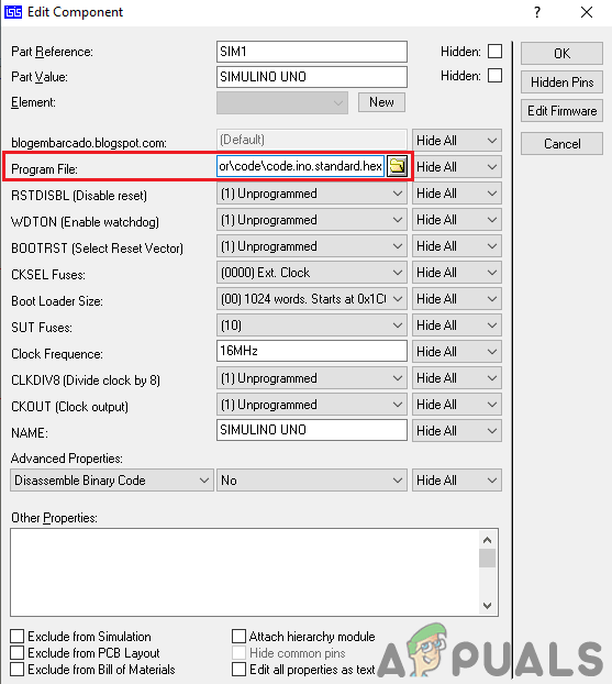 HEX files - Now as the HEX file is generated, open the proteus and double click on the microcontroller board. A box will appear to edit the component. Upload the hex file there.