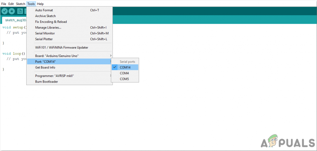 2). Now open the Arduino IDE. From Tools, set the Arduino board to Arduino / Genuino UNO.
