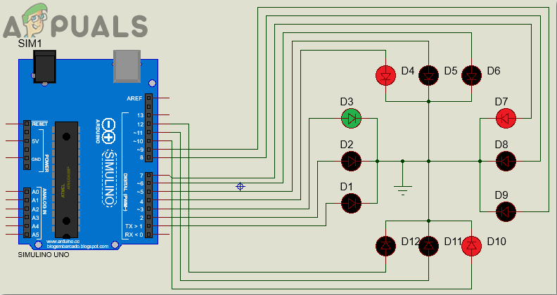 - Now connect the LEDs to the Arduino as shown in the circuit diagram below. LED-1, LED-2 up to LED-12 will be connected to pin1, pin2 up to pin12 of the Arduino Uno board.