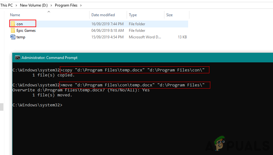 Creating a folder con - You can try renaming or deleting the con folder and the system won’t allow it. You can also not open the folder without cmd commands.