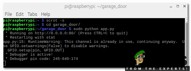 We will have to assign a state to open and close the button. That button will send and fetch the GPIO state from the python script. As we have completed the above HTML code now we can use it in the editor and save it and finally our web server is ready to launch. Open the terminal and navigate to garage_door folder and run the below command mentioned below: