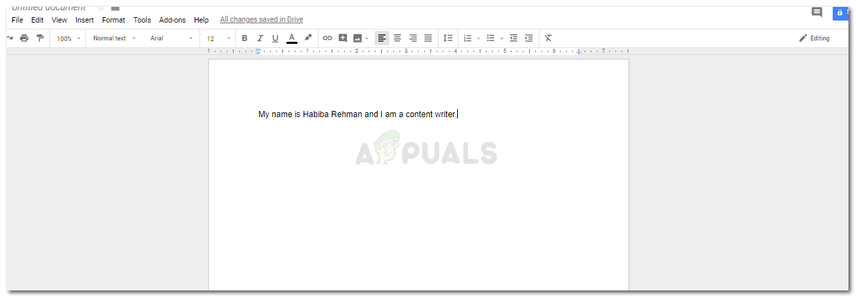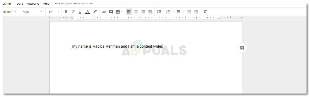 - First things first, sign in to your Gmail and open a blank document in Google Docs. Add the content in the document as needed. This is how your work will look originally.