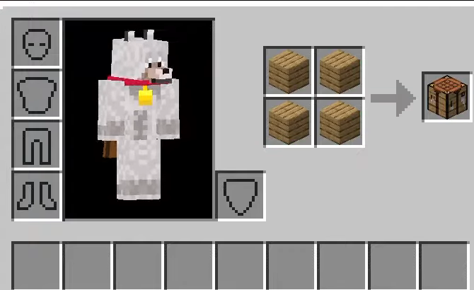 You can place the log in any slot of the crafting menu - Now, remove all the wood logs from the crafting slots and fill all the slots with the wooden planks you just crafted. The result will be a crafting table.