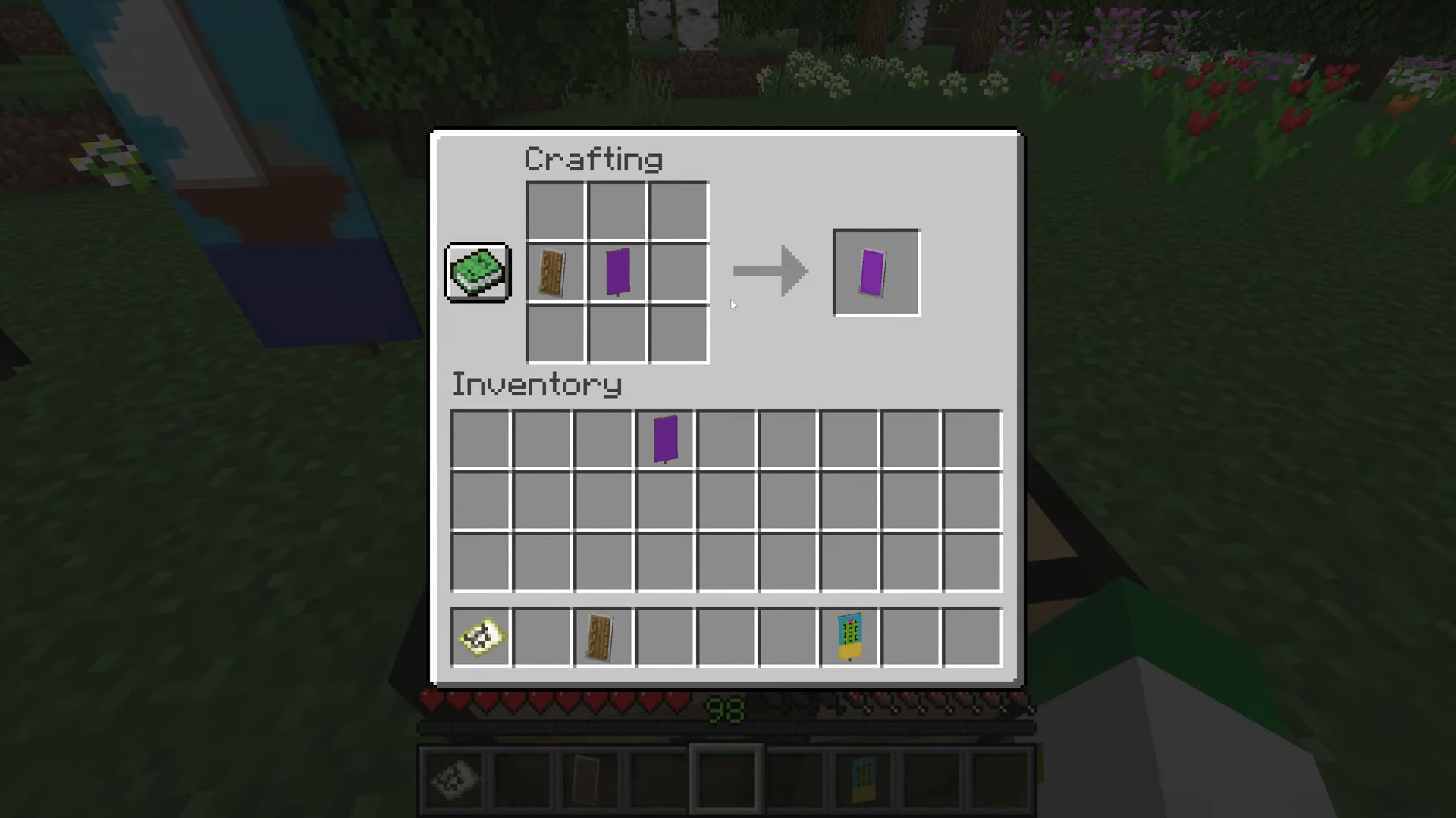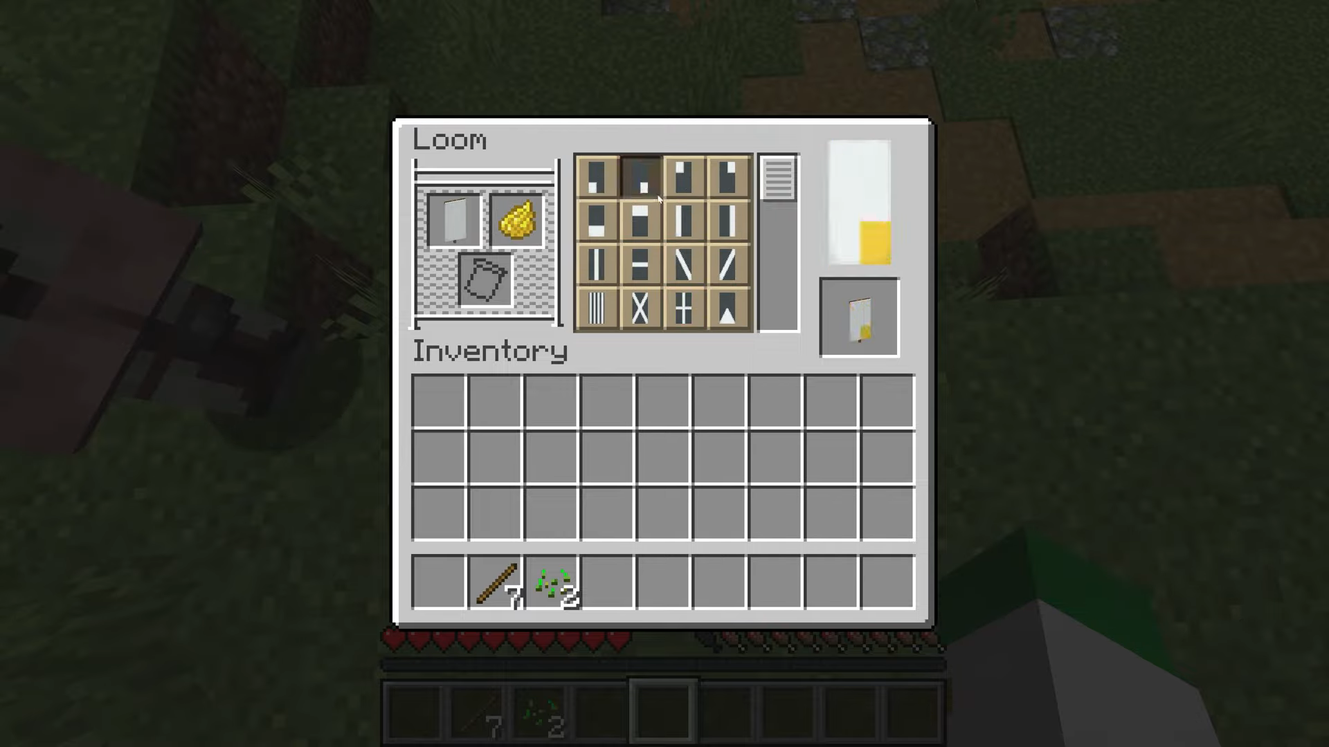 Place the wool and stick exactly as shown - Store the crafted banner in your inventory.