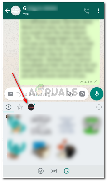 When you open whats app after adding the stickers, the icon for your sticker will automatically be visible here. Tap on it.