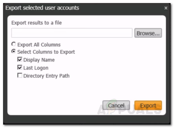 7. You can also export the list of accounts by clicking Export. Select the location where you want the export file and click Export.