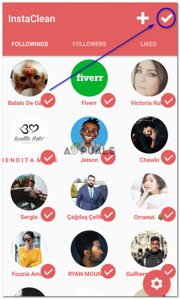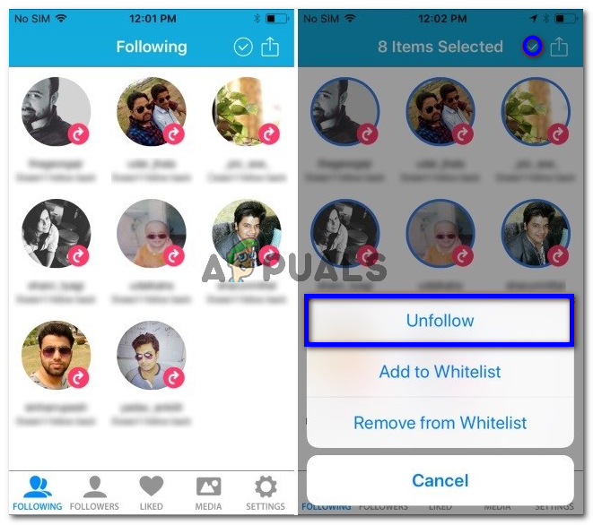 - Now, you simply need to tap on all of the users you want to unfollow and click on the tick icon located at the top right corner.