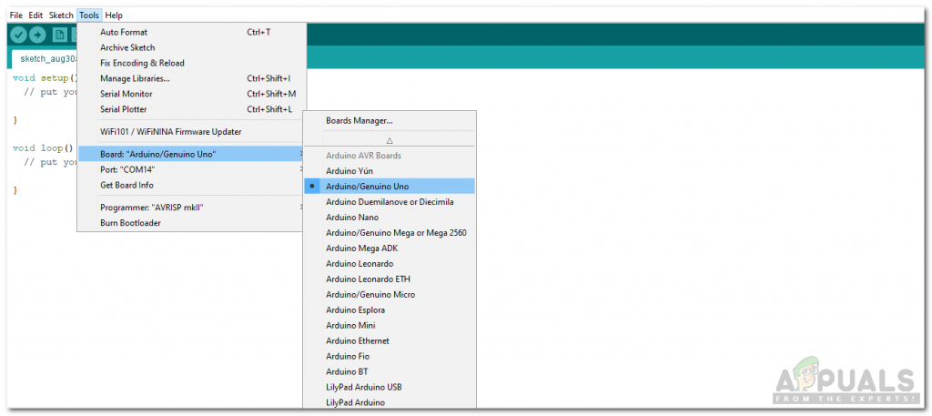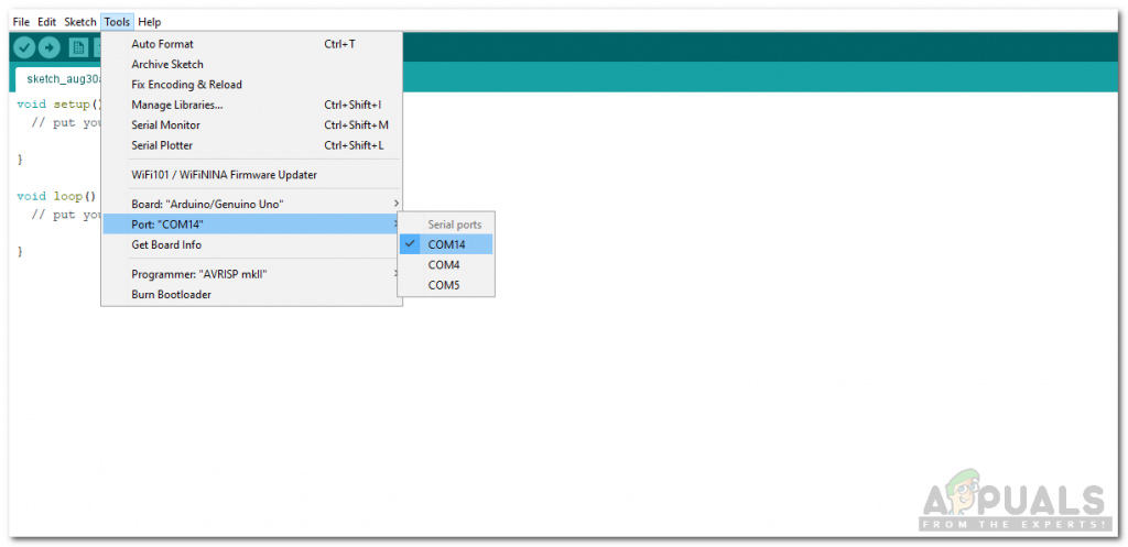 Setting Board - Now set the port that you observed before in control panel.