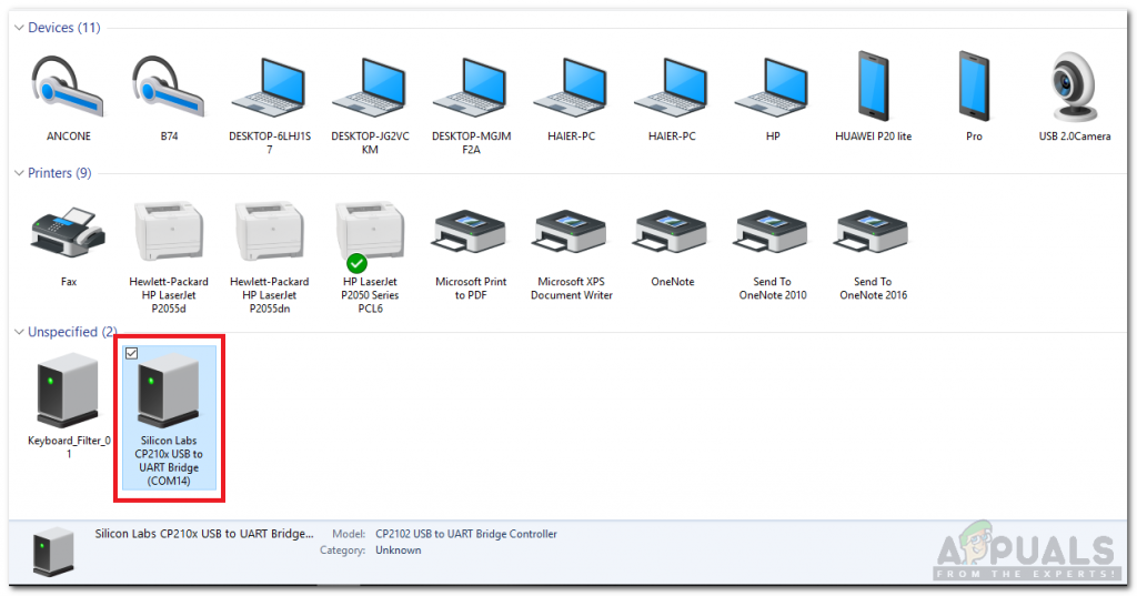 - After connecting your Arduino board to your PC, go to Control Panel > Hardware and Sound > Devices and Printers to check the name of the port to which Arduino is connected. It is different on different computers.