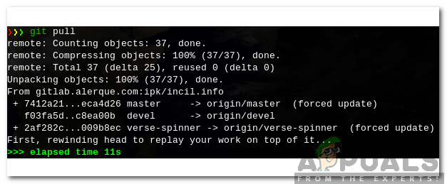 Executing Git Pull Command in the terminal - If there are any conflicts during the merge, consult this page to resolve them.