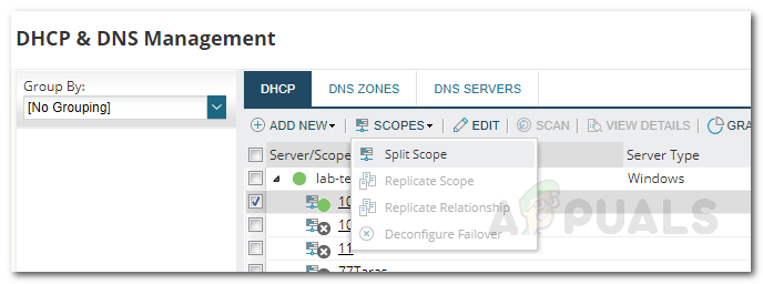Once you have created a scope for a certain DHCP server, you can also split it between two DHCP servers to ensure better availability of DHCP services for your network. This can be done from the DHCP and DNS (Domain Name System) page. To split a scope, do the following: