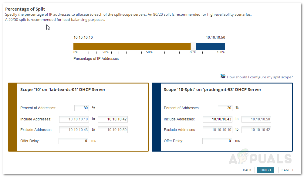 Split Scope Percentage - You can also set the Offer Delay in ms for the secondary scope. After that, click the Finish button.