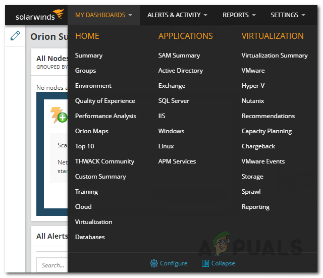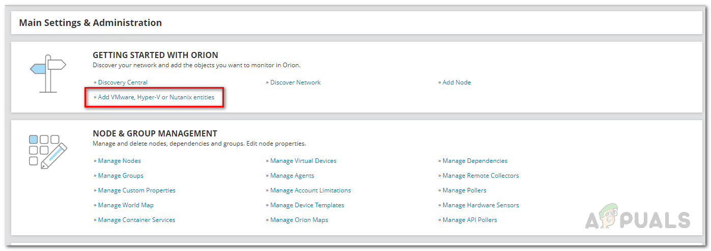 Now that you have installed the Virtualization Manager successfully, you will have to add the Hyper-V virtual machines that you wish to monitor to the tool. This is done via the Orion Platform which can be accessed through the Orion web console which opens up automatically in a browser window as you close the Configuration Wizard. By default, the web console is located at “hostnameORIPaddress:8787” where 8787 is the default port used by the Orion web console. You can also change this through the IIS window but we won’t get into that here. To add the Hyper-V virtual machines, follow the instructions given down below: