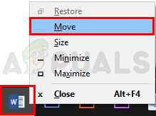 You can open the right-click menu via the Taskbar for the problematic application and select the move option from there. This option will let you move the application window via the arrow keys and even mouse as well. Follow the steps given below to move the application via the taskbar menu