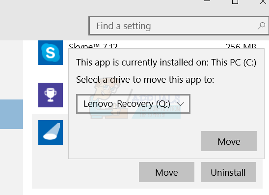 Moving apps from Windows 10 Settings