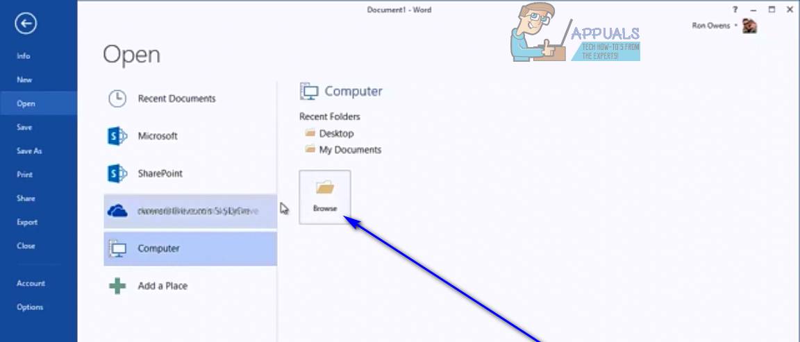 - Under Open, click on Computer to select it.
