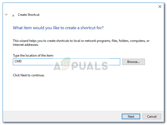 Show More Options on Windows 11 - In the box directly under “Type the location of the item” type ” CMD ” and hit the Next button.