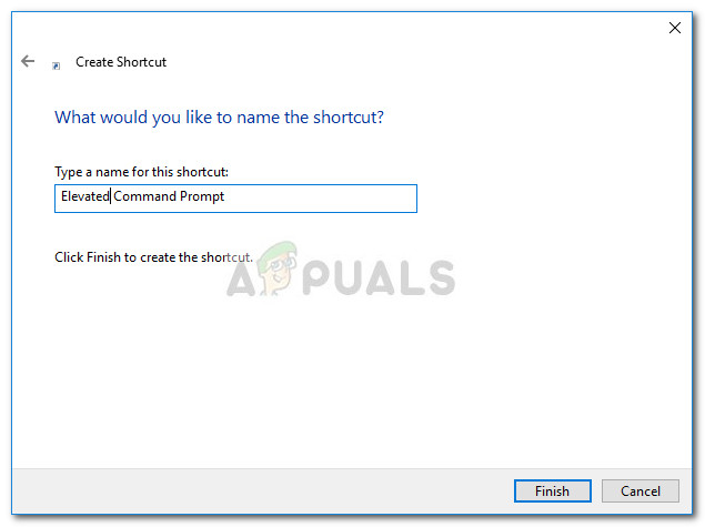 - At the next button, grant the newly created shortcut a name and hit the Finish button to finish the process.