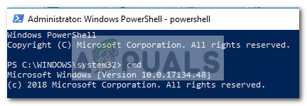 But you can also click on Windows Powershell (Admin) and then type “cmd” inside the Elevated Powershell window to switch to an Elevated Command Prompt window.