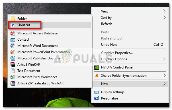 - Right-click anywhere on a free space (on the desktop or in a folder) and choose New > Shortcut.