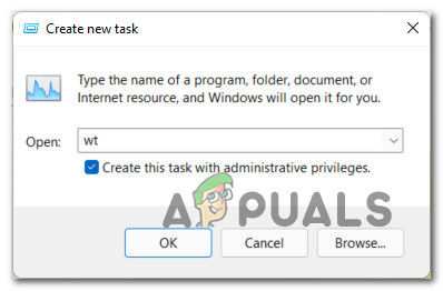 Running a new task - Inside the Create new task box that just appeared, type ‘wt’ and then check the box associated with Create this task with administrative privileges before clicking Ok.