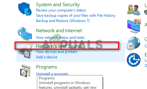 - Now once the control panel is opened, click on the Hardware and Sound menu.