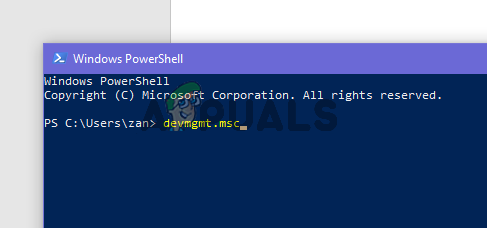 Type devmgmt.msc in the PowerShell