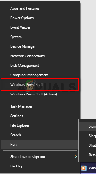 - Right Click on the Start button and then click on the Windows PowerShell button through the quick access menu.