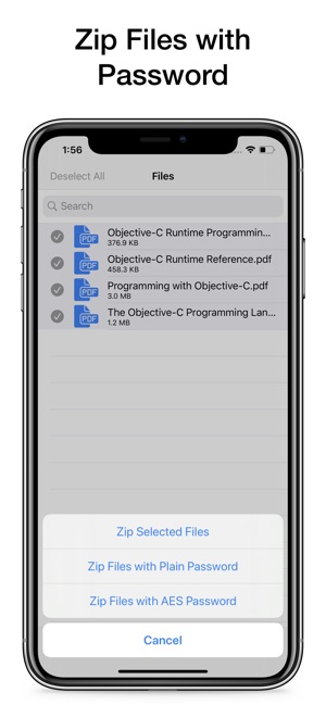 iZip Pro is a paid app with a wide range of features. It not only lets you open password-protected ZIP files, but also create your own ZIP files. iZip is especially useful for business and professional users. Some of its key features include: