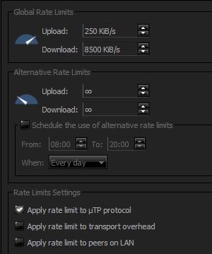 Asymmetric connections like WiFi, ADSL and cable are especially prone to this, especially WiFi, but it can happen on fiber-optic connections as well. So if at all possible, you want to avoid doing massive download/uploads over WiFi and try connecting directly to your modem, but you also want to limit your download/upload rates in QBittorrent’s settings to around 80% – 90% of their maximum.