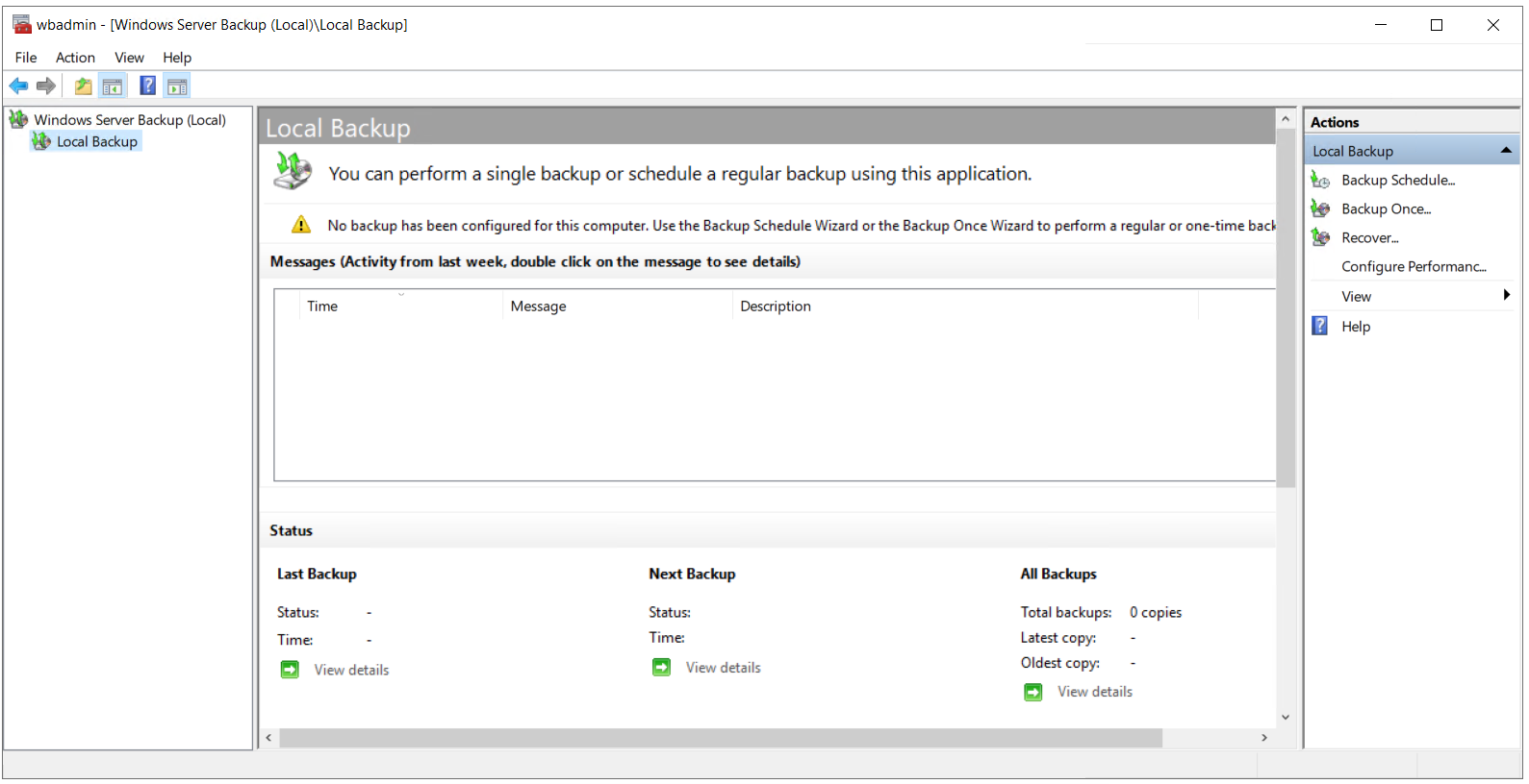 - Open Windows Server Backup