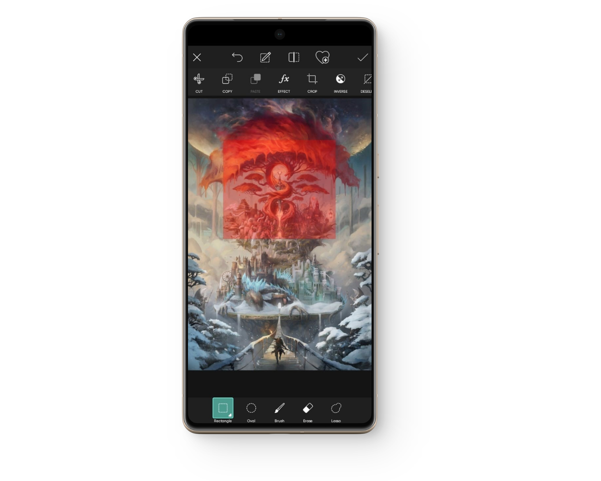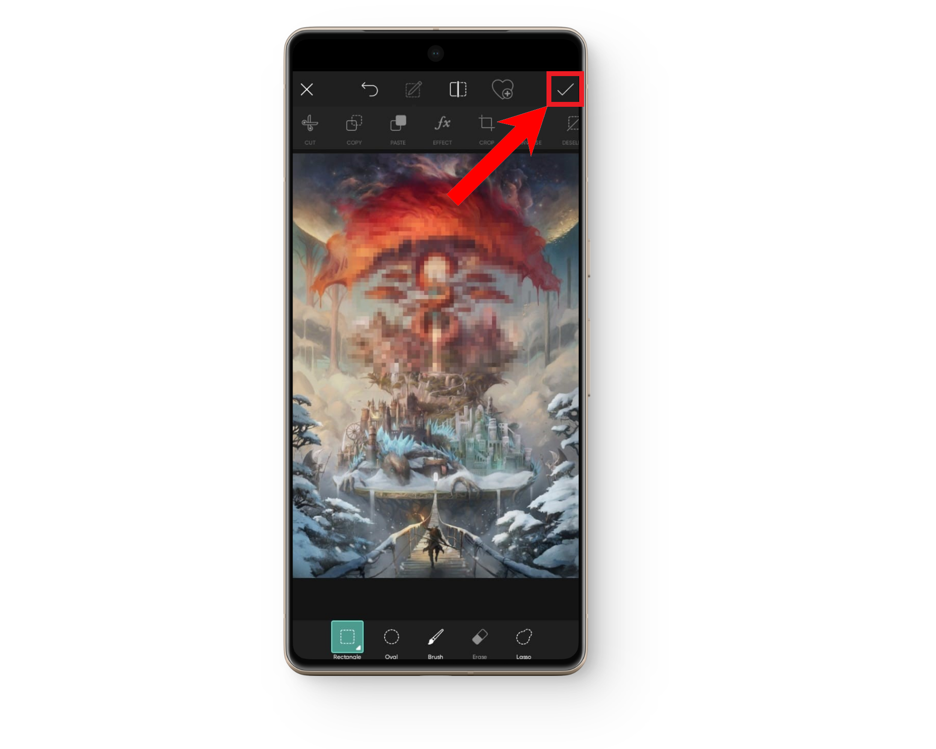 Now, simply highlight the area you want to pixelate using your finger. A rectangle will form according to your selection. You can also use other options like the Circle or Brush to highlight the area according to your requirements. In case you want to pixelate the entire image, use the Selection tool and highlight the image from a top corner to a bottom corner in a diagonal fashion.