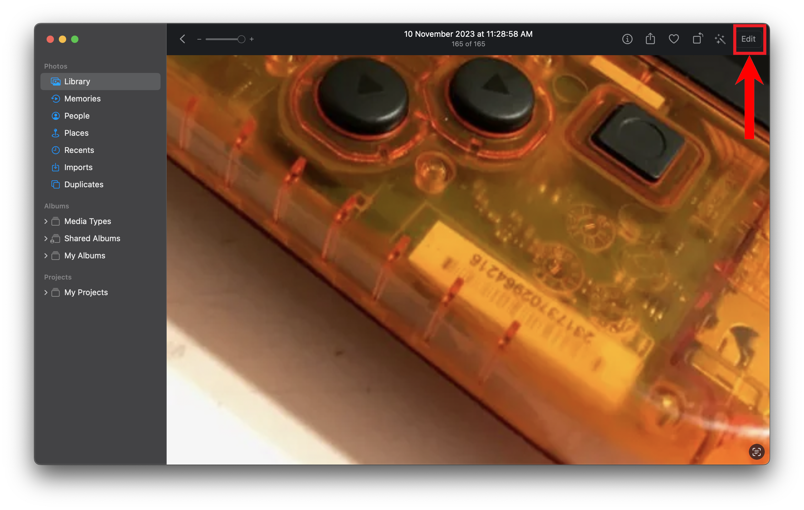 Select your image from your files - After the image has finished loading, double-click on it and click on Edit.