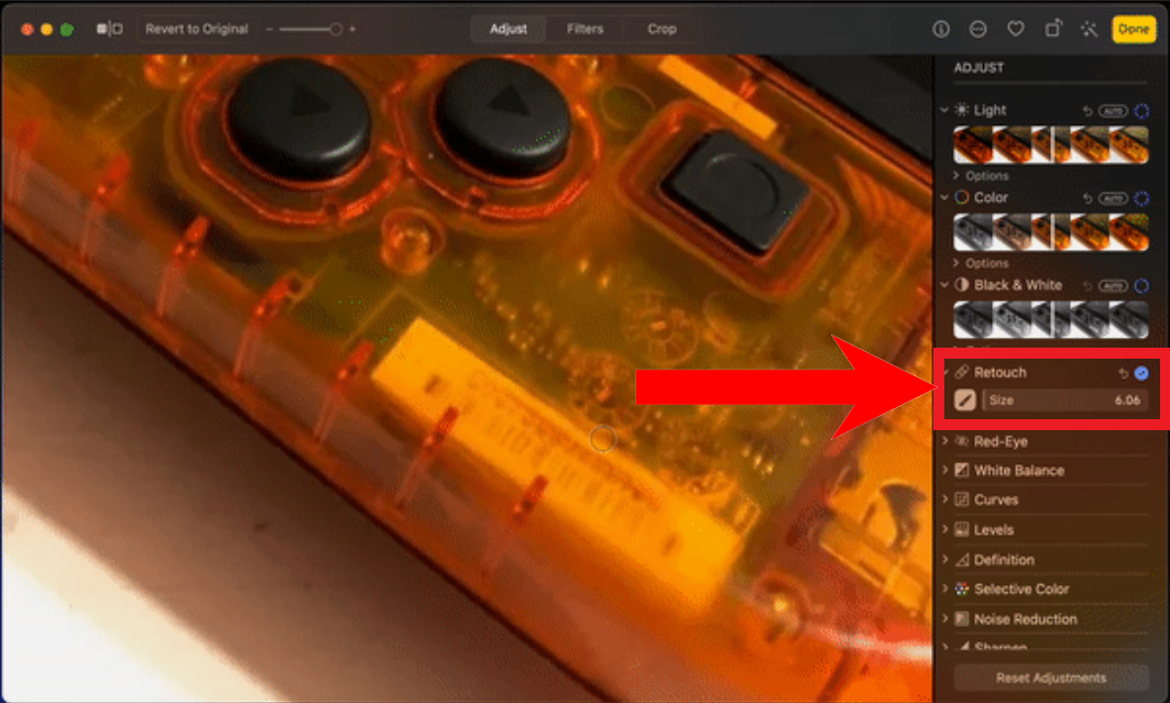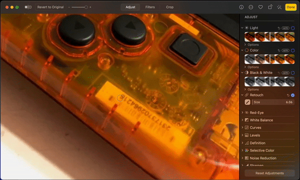 On macOS, you can use the Retouch feature in the built-in Photos app to hide sensitive stuff in your images, although it’s worth noting that this is not technically a pixelating tool. The Retouch features tries to hide the area you’ve highlighted by blending it in the background as best as it can.