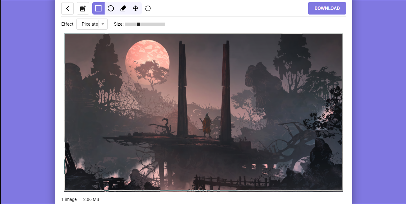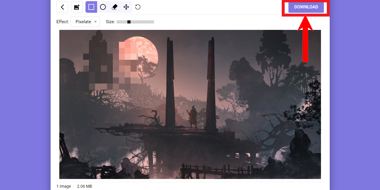 Click on the Download button on the top-right corner of the editing area. A pop-up will appear confirmin that the image is ready to download. Click on Download to download your pixelated image.