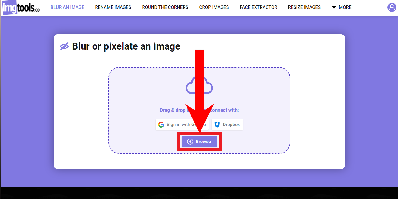Upload the image you wish to pixelate by clicking on the Browse button and browsing through your device.