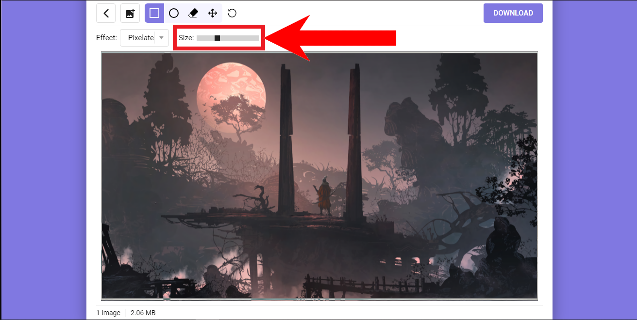 You can use the Size slider to determine how much pixelated the area you’ve selected needs to be.