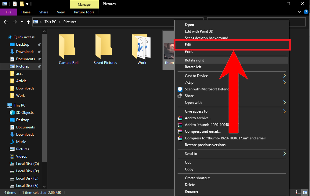 Open up the directory where your image is stored - Right-click on the image and click on Edit.