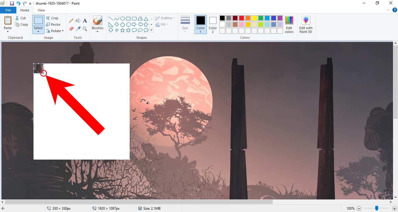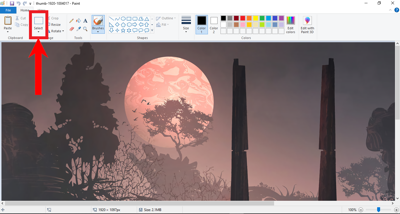 Right-click and select “Edit” - The image will open up in Paint. From the Toolbar, click on the Select tool.