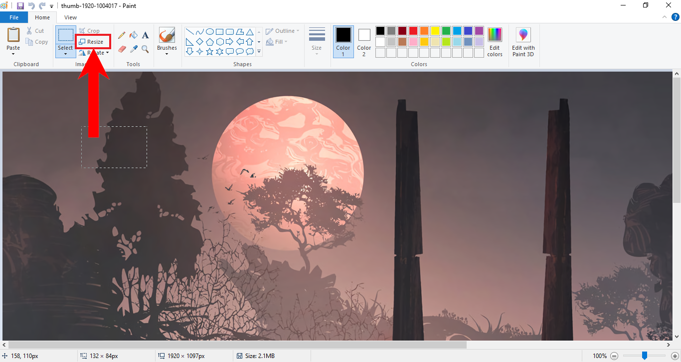 Select the desired area - Once you’ve done this, click on the Resize option next to the Select tool.