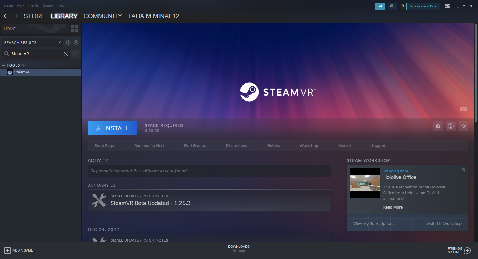 - Install SteamVR from Steam. If you do not already have Steam installed, make sure to install it first.