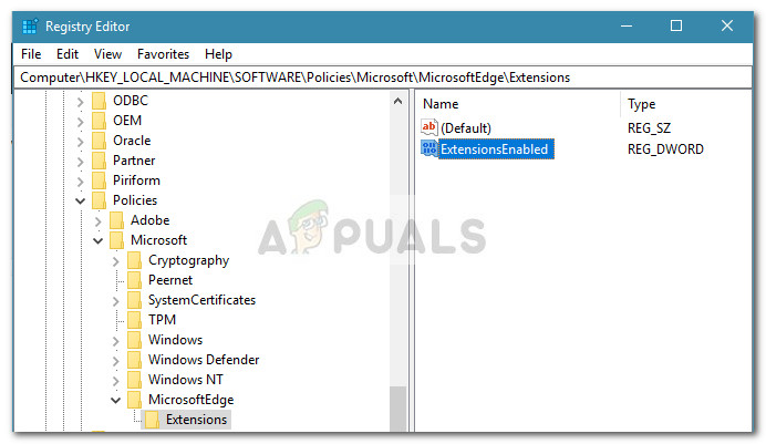 Method 3: Blocking Microsoft Edge Extensions via Registry Editor