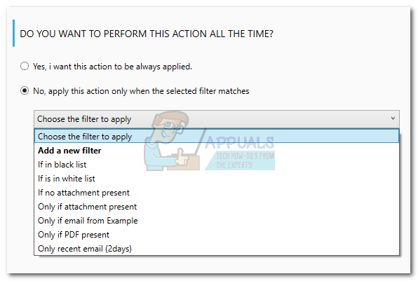 The most elegant solution that will automatically print emails and email attachments is to use a dedicated software. But configuring an external email manager to automate this process will eventually require you to spend some money. Follow Method 1 to configure Automatic Email Manager 6 to print your email and email attachments. They offer a 30 days trial period, so you’ll be able to try it out for free before spending any money.